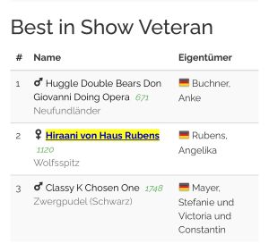 Dann Bester Veteran Gruppe 5 und Platz 2 Best Veteran in Show.