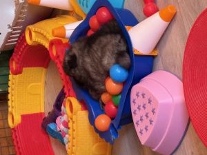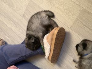 Auf Noa`s Schuh schlafen ist soooo bequem und mit Mama schmusen ist das Beste