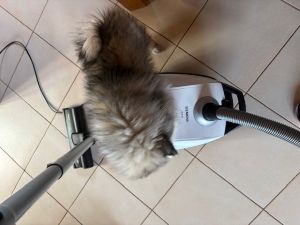 Phelin und ihr liebstes Spielzeug der Staubsauger