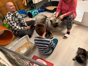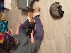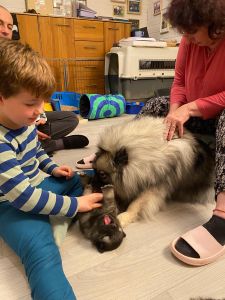 Mit 4 Wochen kam dann auch der erste Kinderbesuch. Finn ist sehr erfahren da Osito bei ihm lebt.