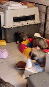 Jetzt sind die kleinen Nikoläuse schon 2 Wochen alt. Alle haben die Augen auf und bewegen sich schon fleissig in der Wurfkiste.